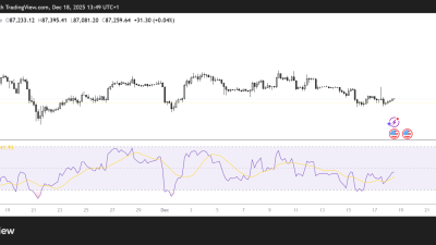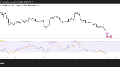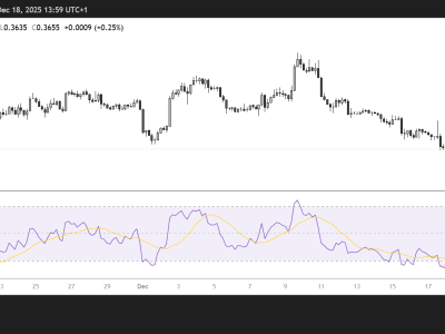 Short-term charts show bearish momentum, with the relative strength index in negative territory and the 20-day moving average sloping downward.