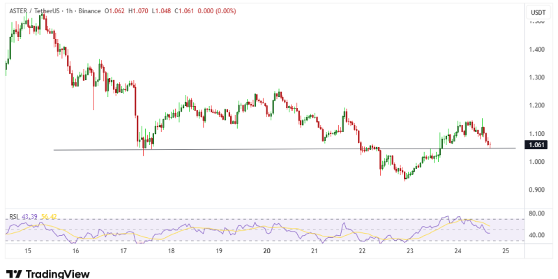 The ASTER token is currently trading at $1.06, just in the red.