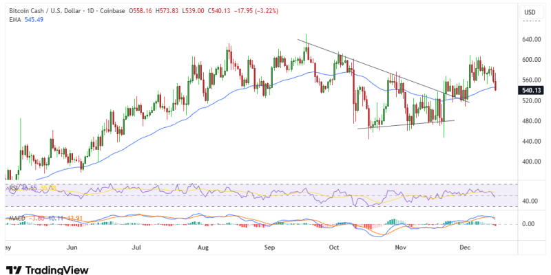 - Bitcoin Cash price has dipped below $550 as Bitcoin sees a sharp decline to under $87,000.