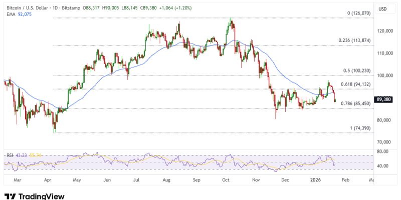 Bears have also breached the key support zone at the 50-day Exponential Moving Average (EMA) at $92,066 and a prior upper consolidation boundary near $90,000.