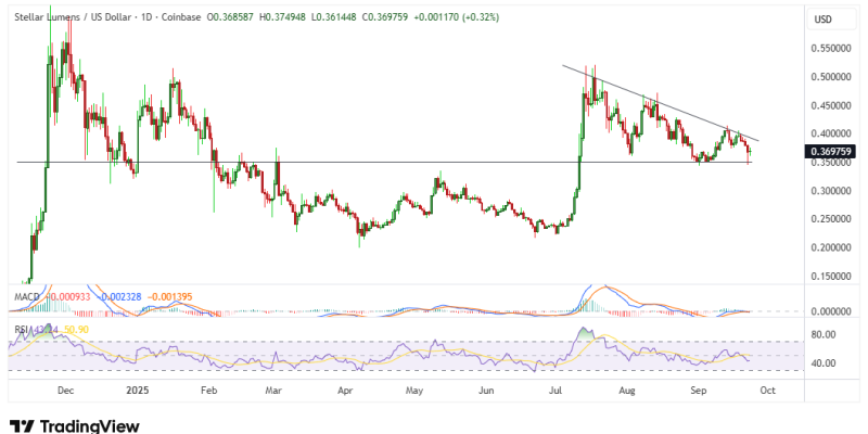 From a technical analysis perspective, XLM is poised at the key support level near $0.35.