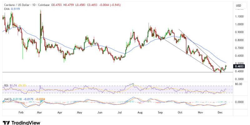 ADA’s recent gains mean bulls could target the $0.50 mark, a level below which bears accelerated the downward pressure in mid-November.