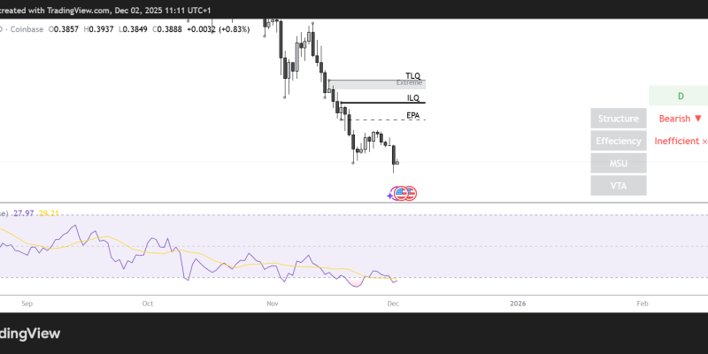 The ADA/USD daily chart is bearish and inefficient as Cardano has underperformed in recent weeks. The coin dropped below $0.40 after losing 35% of its value in November and could dip lower over the coming days and weeks.