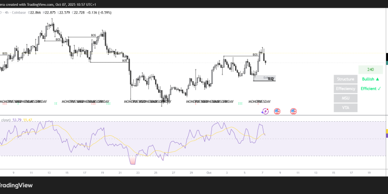 The LINK/USD 4-hour chart is bullish and efficient as Chainlink has performed excellently in recent days. With an RSI of 55, LINK is showing signs of growth and could record further bullish momentum in the coming days.