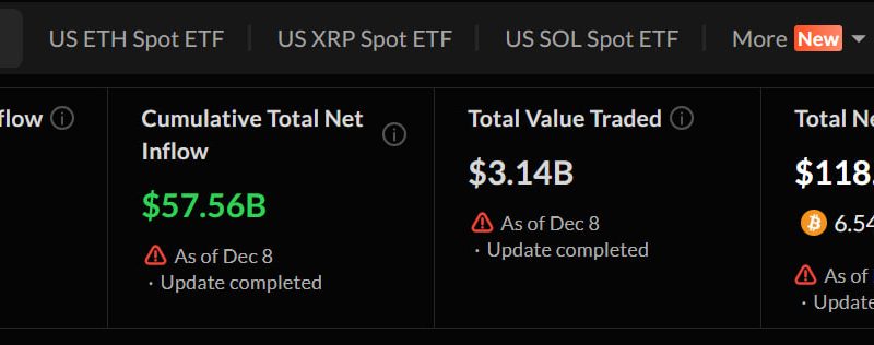 - BTC ETFs recorded $60.48M withdrawals on December 8.