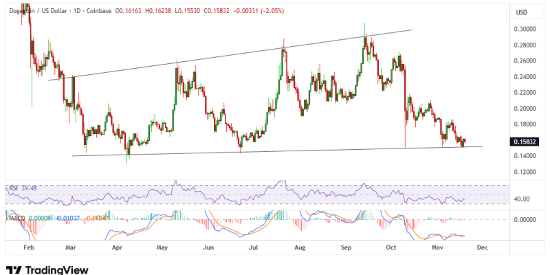 Notably, DOGE dipped to just under $0.15 on Nov. 17, extending losses since the $0.30 level.