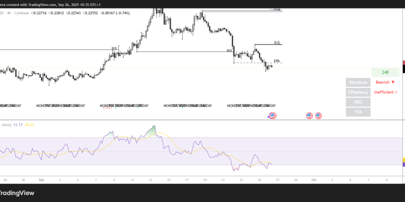The bearish performance has seen DOGE’s price slip to the $0.225 level. If the bearish trend continues, DOGE risks dropping below the $0.20 level for the first time since August 6th.