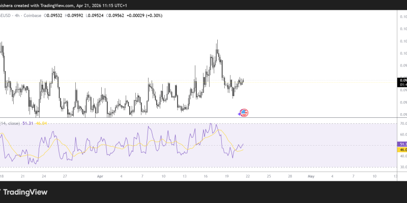 - DOGE is up 1% and is now trading at $0.095.