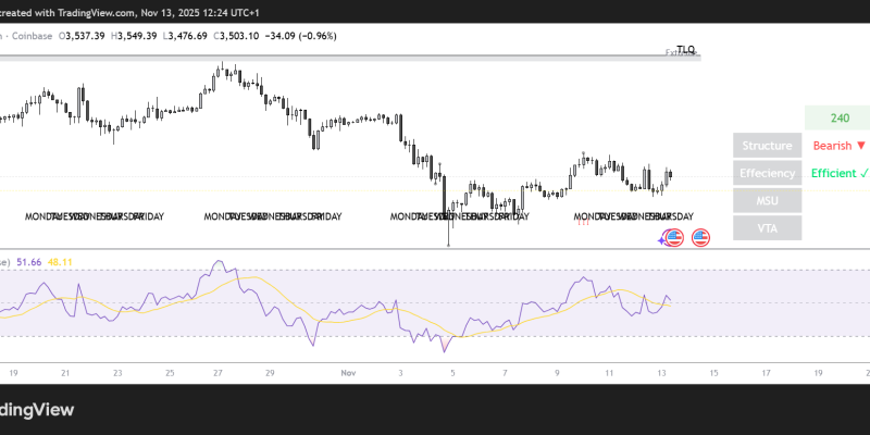 The bearish performance comes after Ether faced a rejection at the 200-day Exponential Moving Average (EMA), just below the $3,660 resistance, on Wednesday. It dropped to the $3,470 support level but has now bounced back and is trading above $3,500 per coin.