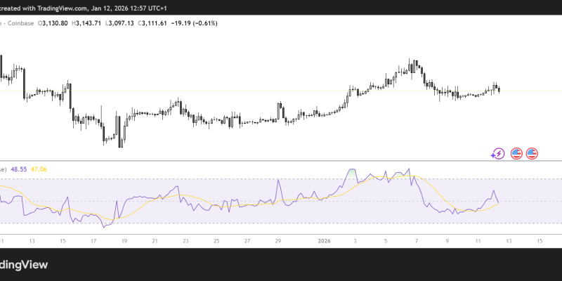 - ETH is trading above $3,100, up by less than 1% in the last 24 hours.