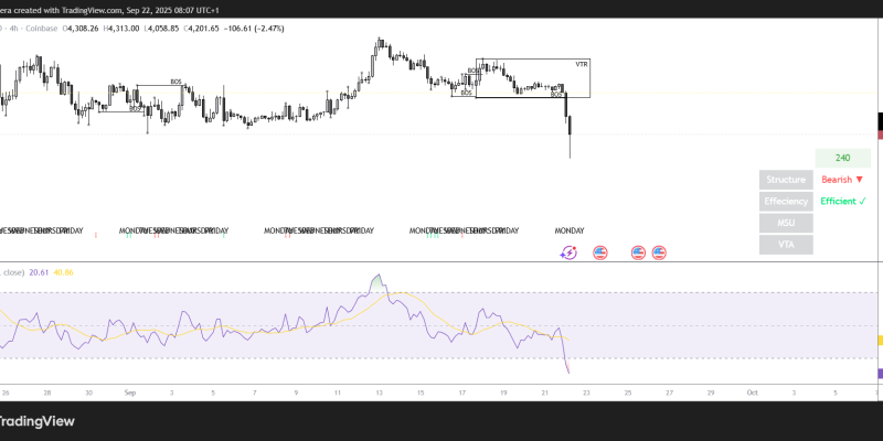 It sharply dipped to $4.067 on Monday but has slightly bounced back and now trades at $4,203 per coin. The RSI of 40 is below the neutral level, indicating strong bearish momentum. The MACD also showed a bearish crossover during the weekend, suggesting a bearish momentum ahead.