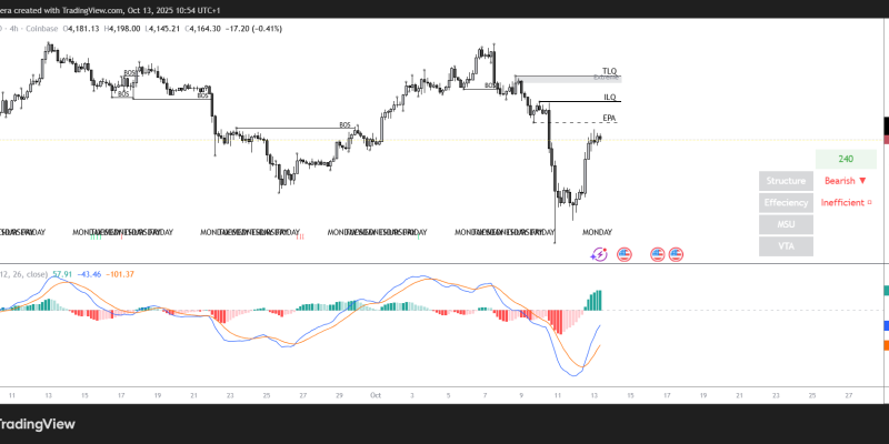 - ETH is up 8.5% in the last 24 hours and is now trading above $4,100.