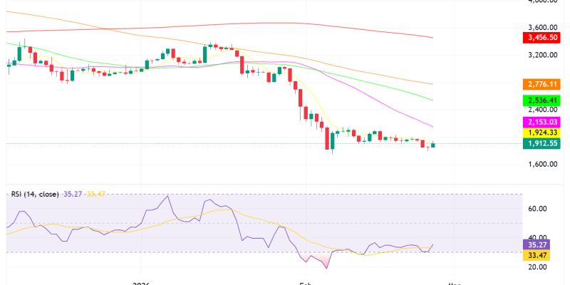 The price has been trading near the $1,800–$1,900 zone, an area that has repeatedly acted as support during recent sell-offs.