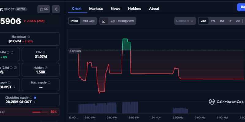 With the first privacy payment layers launching on Solana soon, traders’ attention has shifted to GHOST’s price performance, especially as the community braces for partnership and new utility announcements.