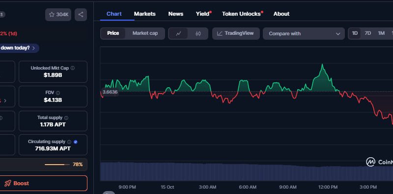 Aptos’ native token exhibited a downward trajectory as the broader market bloodbath outweighed the partnership updates.