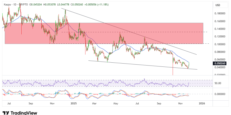 - Kaspa has rebounded to above $0.05 as bulls eye new momentum.
