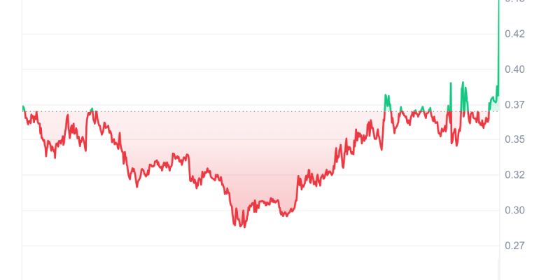 As of writing, LA traded around $0.48, sharply paring gains amid a staggering 1,120% spike in daily trading volume.