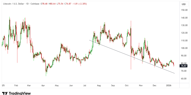 LTC traded at around $77 at the time of writing.