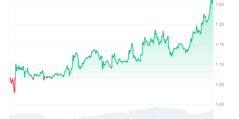 This intraday surge, which saw the token peak at $1.27 before stabilizing around current prices, came amid a notable spike in daily trading volume.