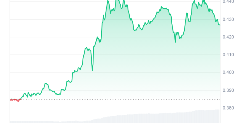 This surge saw the DeFi token stand alongside Zcash, Euler and Aerodrome Finance as some of the top performers on the day with double digit gains. While selling has token’s price off intraday highs, bulls are looking to hold near $0.42.