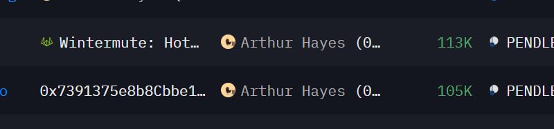 - Arthur Hayes has scooped 218,000 PENDLE tokens today.