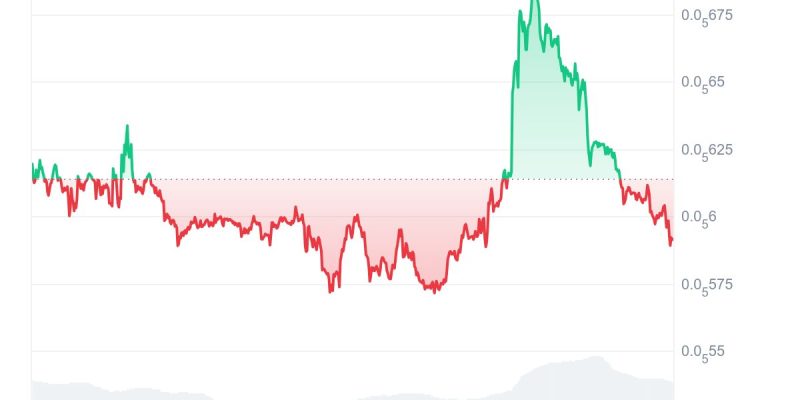 The token traded at around $0.0000059, down from recent highs of $0.0000065, with sell-off pressure mounting amid heightened selling activity.