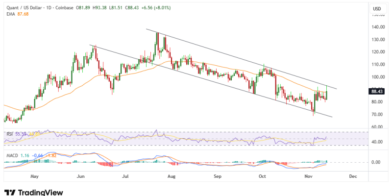 This swift recovery marks a more than 28% surge from November 4th’s nadir, when QNT fell to under $68. Gains point to the bulls’ resilience despite the broader market turbulence.