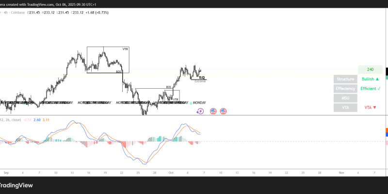 The SOL/USD 4-hour chart is bullish and efficient after Solana found support around the 61.8% Fibonacci retracement level at $193.52 late last month. Since then, it has added 18% to its value and now trades at $233 per coin.