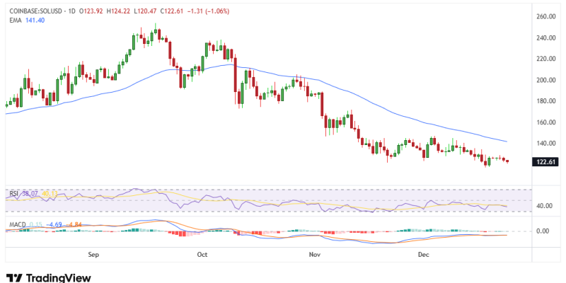 Solana has extended its downturn in the final weeks of 2025, dipping below the $130 mark and testing levels around $120.