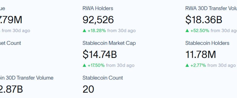 - RWA holders jumped 18% the past month, indicating amplified adoption.