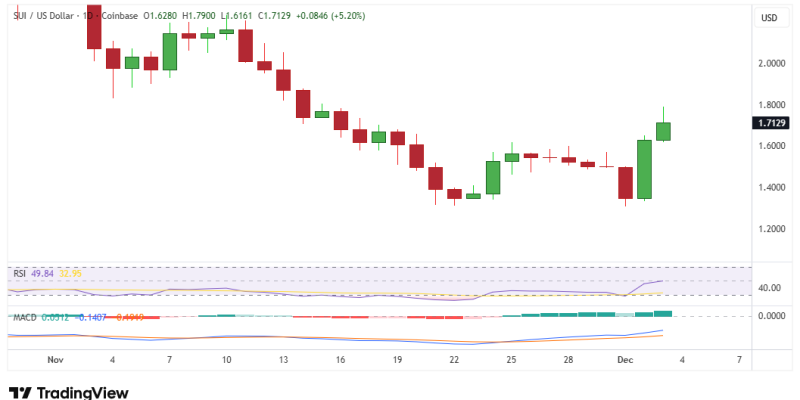 - SUI price hit intraday highs of $1.79 as the broader crypto market posted a rebound.