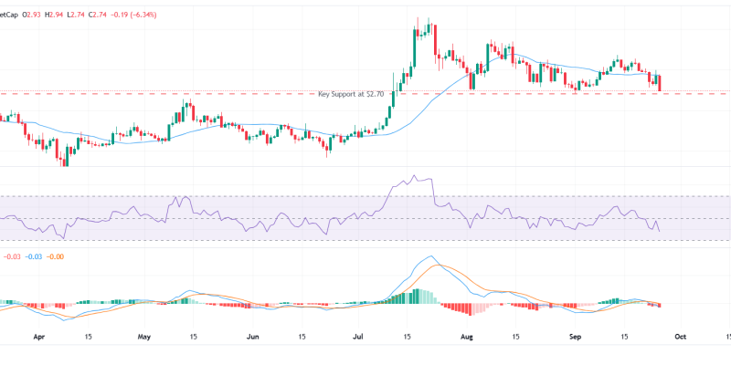 From a technical analysis standpoint, the token is trading below its 30-day moving average of $2.93, signalling that sellers remain in control.