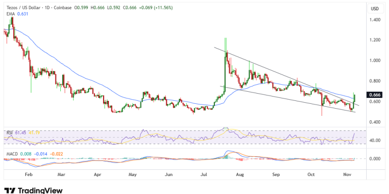 Gains have allowed XTZ bulls to hit highs of $0.69 on November 7, 2025, the highest level in over a month.