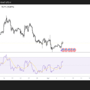 Also, the daily chart’s Relative Strength Index at 65 suggests further gains before overbought conditions.