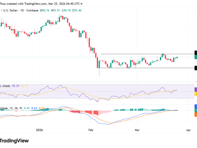 Meanwhile, the MACD shows bullish divergence, but a shrinking histogram suggests limited breakout potential without a notable volume surge.