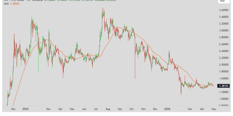 Ripple cryptocurrency XRP is trading largely flat over the past 24 hours, as buyers struggle to decisively breach the $1.40 level following an intraday uptick from lows of $1.36.