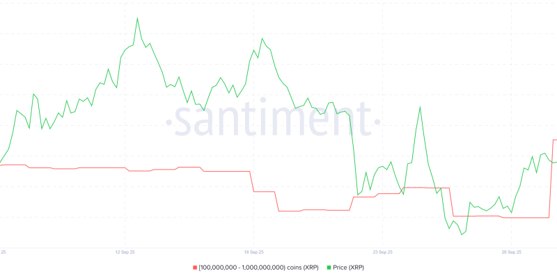 Large holders have made their presence felt in recent days, with wallets holding between 100 million and one billion XRP adding over half a billion tokens worth $1.54 billion.