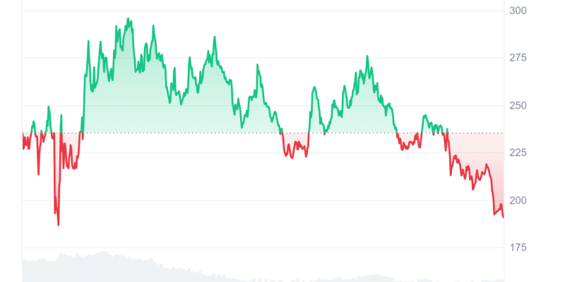 Zcash price drops to $190 amid broader crypto pullback