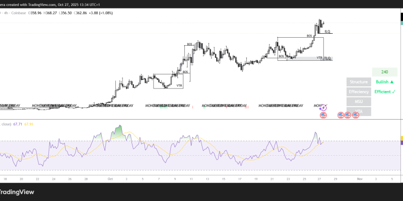 - The coin is now trading above $350 and could rally higher in the near term.
